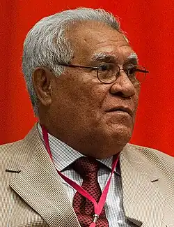 He was not re-elected in the 2010 general election. Dr Falesa Pitoi, who was elected, became ill and was unable to attend parliament.[3] In late 2013, following an assessment of Dr Pitoi's health, the governor-general declared a vacancy for the constituency of Nanumanga.[4] The polling date for the by-election occurred on 14 January 2014.[5] Otinielu Tausi was the successful candidate.[6] Following his election, he chose to join the parliamentary majority of prime minister Enele Sopoaga. Tausi was elected as speaker on 3 March 2014 to replace, Sir Kamuta Latasi.[7][8] He was re-elected as the speaker following the 2015 Tuvaluan general election.[9]