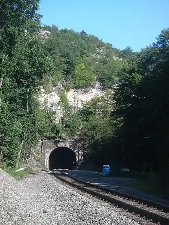 The Otisville Tunnel is a railroad tunnel that carries Metro-North Railroad's Port Jervis Line beneath the Shawangunk Ridge. It is the longest tunnel in the Metro-North system, at 5,314 feet (1,620 m) in length.[1] Although the track curves at the western opening, the tunnel itself is a straight line, allowing an observer to see all the way through.