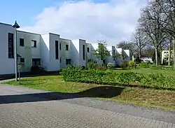 It was only with the florally named "Blumläger Field Settlement" ("Siedlung Blumläger Feld") of 1930/31 that it became possible to apply the planned rents.[5] An unusual feature of this development was that each residential unit was assigned its own tenants' garden, directly accessible at the ground floor level. The incorporation of gardens gives the development a "garden city" character.[5] The settlement was partly torn down in 2003, but the second phase, on the north side of the "Galgenberg" Street, remains fully preserved from that redevelopment.[7]