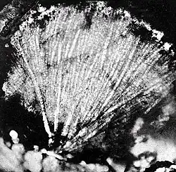 Hahn started his career as a lawyer. He eventually left the legal profession for the natural sciences. The University of Tübingen awarded him a doctorate for his participation in the Eozoön canadense controversy.[2] He was an active member of The New Church (Swedenborgian)[3] and was a Neptunist.[4] He published Die Urzelle in 1879.[5] His book Die Meteorite (Chondrite) und ihre Organismen,[6] published the following year in 1880, was a major work in the field of meteoritics that included 142 black and white photomicrographs of chondrite thin sections. In this latter work Hahn proposed the theory that the chondrites consist entirely of fossilized organic remains of life-forms, namely, fossilized sponges, corals, and crinoids.[7][8][9] In addition, he claimed that the iron meteorites have an organic origin and that they are the petrified remains of a fungus or plant that was permeated with iron-nickel alloys, e.g. similar to ichnotaxa like the Chondrites.[10]