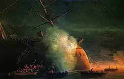 Russian painting of the attack on Asar-i Şevket, depicting her supposed sinking