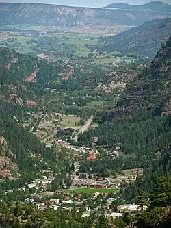 Colona, Eldredge, and Dallas are located in the northern reaches of the county along U.S. Highway 550, though Eldredge and Dallas are located within the valleys of the San Juan Mountains while Colona is in the short stretch of the Uncompahgre Valley within Ouray County. Portland is placed down valley of Ouray, though still south of Ridgway. Camp Bird and Thistledown are communities placed southwest of Ouray on Camp Bird Road. From north to south the communities are Colona, Eldredge, Dallas, Ridgway, Ouray, and then southwest along Camp Bird Road to Thistledown and Camp Bird. The historic towns of Sneffels and Ironton are located further west from Camp Bird and south of Ouray, respectively. Populations listed below are from the 2010 United States census data.[16]