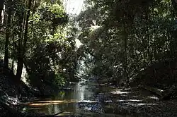 Ourimbah Creek rises on the southern slopes of the Hunter Range, about 1.6 kilometres (0.99 mi) south of Kulnura. The river flows generally south southeast and east northeast, before reaching its mouth within Tuggerah Lake, about 4.8 kilometres (3.0 mi) southeast of Tuggerah.[1] The river descends 304 metres (997 ft) over its 37-kilometre (23 mi) course.[2]