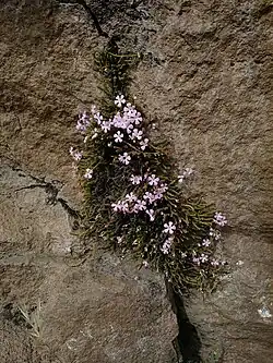 Both white- and pink-flowered Ourisia microphylla have been successfully cultivated by rock gardening enthusiasts, and artificial interspecific hybrids have been made between O. microphylla and another suffruticose species, O. polyantha.[9] These hybrids have been named Ourisia ×bitternensis M.Sheader & A.Sheader.[10]