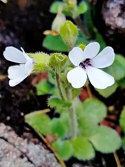 Ourisia remotifolia Arroyo is in the plant family Plantaginaceae.[2][3] Mary Kalin Arroyo described O. remotifolia in 1984.[4][1]