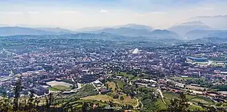 Oviedo (Spanish: [oˈβjeðo] ) or Uviéu (Asturian: [uˈβjew]) is the capital city of the Principality of Asturias in northern Spain and the administrative and commercial centre of the region. It is also the name of the municipality that contains the city. Oviedo is located approximately 24 km (15 mi) southwest of Gijón[2] and 23 km (14 mi) southeast of Avilés,[3] both of which lie on the shoreline of the Bay of Biscay. Oviedo's proximity to the ocean of less than 30 kilometres (19 mi) in combination with its elevated position with areas of the city more than 300 metres above sea level causes the city to have a maritime climate, in spite of its not being located on the shoreline itself.