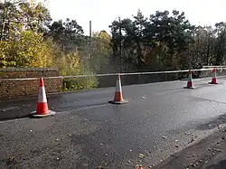 On 5 November 2010, at about 3:30 pm, a concrete mixer lorry fell off the bridge over the railway 50 metres north-east of the station, and landed on carriages of a train accelerating away from the station.[3] No-one was killed. Witnesses stated that the rear of the lorry crashed through the parapet of the bridge and dragged the whole vehicle over the side of the bridge.[4] The eight-carriage train, operated by South West Trains, was working the 15:05 Guildford to London Waterloo.[3] The train was formed of two Class 455 electric multiple units. The lorry, loaded with concrete and weighing 24 tonnes, landed on the sixth carriage, severely crushing the end of the roof.[5] Further damage was sustained by the fifth, seventh and eighth carriages, with the last of these being derailed at its trailing bogie, although the train remained upright.[5] British Transport Police reported that six people on board the train sustained minor injuries, whilst the driver of the lorry had sustained more serious injuries.[3] This was later revised to two serious and five minor injuries.[5] The Class 455 electric multiple unit involved has since been fully repaired using a rebuilt carriage from a Class 210 diesel multiple unit and returned to service in July 2013.
