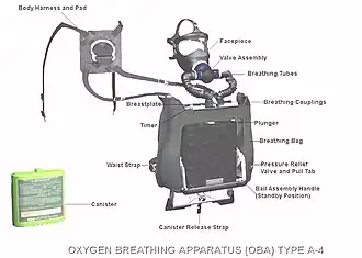 1. ^ "About the Oxygen Breathing Apparatus (OBA)". Naval Sea Systems Command. US Navy. Archived from the original on July 9, 2002. Retrieved 2007-01-06.