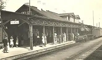 The original railway station at Pikk street in the centre of Pärnu opened in 1896, and a station in Papiniidu opened at the same time. Both stations closed in 1972 and were replaced by Pärnu kaubajaam (to the north-east of the city) and in 1976 by a new through station in the Raeküla district. The first Tallinn–Pärnu–Riga trains ran in 1981, with the service to Riga being discontinued in 1992. The line south of Pärnu to Mõisaküla on the Latvian border was dismantled in 2008.[1]