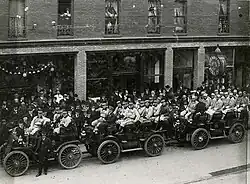 The visiting Oakland Oaks prepare to travel to the ballpark on Opening Day 1903 to face the Sacramento Senators.