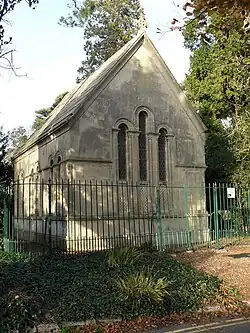 The chapel was built in the Romanesque style and restored by Poole Borough Council in 1993.[2] The building and the railings which enclose it were Grade II listed in 1981.[3]