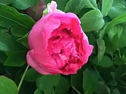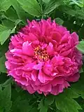 Paeonia × suffruticosa is a name used for a group of cultivars of tree peonies that are the result of hybridisation with species exclusively belonging to the subsection Vaginatae. The common name used in China is mǔdān (Chinese: 牡丹). Plants belonging to this group have been cultivated for millennia in China, initially only as a source of traditional Chinese medicine particularly the skin of its roots (牡丹皮; mǔdān pí). Already early on the plant was also cultivated for its ornamental value, and it is highly revered in Chinese culture.