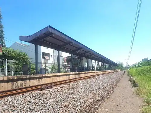 This station was inaugurated on 9 February 2004, along with the launch of the Delta Express by President Megawati Soekarnoputri.[2] However, on 10 February 2021, the passenger service at this station was discontinued so that now not a single commuter train service stops at this station.[3]