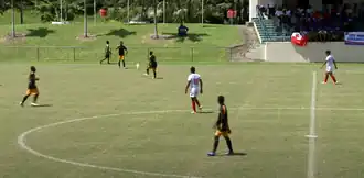 Pago Pago Park is also home to the Korean House, a social center for Korean fishermen, and several Korean food kiosks.[3] The park houses a collection of fales where local artisans practice traditional handicrafts such as weaving, carving, and shellwork. It is a central gathering place for the community, hosting both formal and informal sports activities, including rugby, soccer, volleyball, basketball, American football, and cricket. It is a popular location for large events such as the annual Flag Day celebrations, Fourth of July festivities, and fiafias organized for political purposes.[4][5]