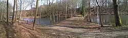 The site covers 35 hectares (86 acres).[3] The parkland consists of woodland, grassland and several lakes located in a narrow valley.[1] A medieval road borders the site to the north-west edge, creating a natural boundary with the neighbouring Wasing Estate.[4]