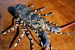 Panulirus ornatus (known by a number of common names, including tropical rock lobster,[3][4] ornate rock lobster,[5] ornate spiny lobster[2] and ornate tropical rock lobster[6]) is a large spiny lobster with 11 larval stages .[7]