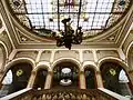 Inside, the monumental staircase and the lighting through large Skylights on the roof are remarkable. On the ground floor, there is a central hall on large pillars topped by a large skylight and a Stained glass window with the coat of arms of the province of Pontevedra. The plenary room is decorated with antique plasterwork. Innovative materials for the time are used in the interior of the building, such as iron in the Dormers and the mansard.[6]
