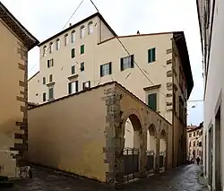 The Palazzo Sozzifanti also known as the Palazzo Buontalenti is a Renaissance-style palace located at the intersection of Via del Carmine, Via de' Rossi, Via Abbi Pazienza and Via Sant'Andrea in central Pistoia, Tuscany, Italy. The palace is used in 2019 as a temporary exhibition site by the Cassa di Risparmio di Pistoia and Pescia Foundation.