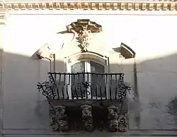 Palazzo Zacco is a palace in Ragusa, Sicily. It is most notable for the carvings in the Sicilian Baroque style which decorate its facades, especially the putti and masks which appear to support the palazzo's balconies on two of its symmetrical elevations. The palazzo was constructed circa 1750 as the townhouse for Baron Melfi di San Antonio. It was later bought by the Zacco family who renamed it after themselves as was the tradition of the time.