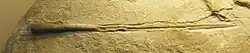 A cyanobacteria, member of the family Oscillatoriales. Girvanella is almost rock-forming in the lower and upper levels, and is very common, but can only rarely be detected in the bituminous clay marl slate due to preservation reasons.[27] |