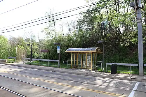 Palm Garden station is an at-grade combined light rail and busway station operated by Pittsburgh Regional Transit in the Mount Washington neighborhood of Pittsburgh, Pennsylvania. The station is located on an exclusive right-of-way shared by the Red Line of the Pittsburgh Light Rail and South Busway routes 39, 41, Y1, Y45, Y46, Y47 and Y49. The station provides access to residences along the back slope of Mount Washington and is named for the large Palm Garden Apartments complex, which is centered on the stop.