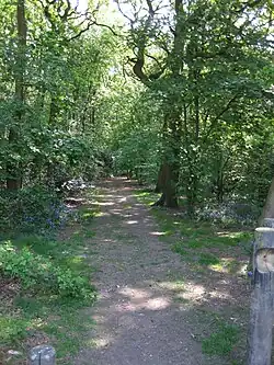 An independent ecological survey was undertaken in 2004,[1] which recommended several long term management tasks including for thinning, coppicing, introducing glades, improving dead wood resources, and managing weeds, brambles and non-native species. The survey was one of many undertaken borough wide as part of the Solihull Woodland Management Programme, which aims to provide a commitment to conserving and improving the various woodlands and parks within the borough.[4] Active woodland management includes for Hazel coppicing, and the use of shire horses, as an alternative to damaging wheeled or tracked vehicles, for removing felled timber.[3]