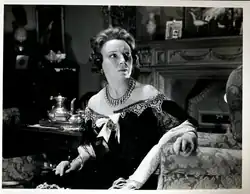 From the early 1950s, Brown's arthritic condition (first appearing when she was sixteen) began to make playing on the stage difficult; her mobility was restricted and she was in great pain, which was kept at bay by drugs.[5] Nevertheless, she was a notable success as Jennet in the London production of Christopher Fry's The Lady's Not For Burning, opposite Richard Burton, Claire Bloom and John Gielgud (1949), which transferred to Broadway for an extended run (1950–51).[6][7] Time magazine wrote (20 November 1950): "As the lady, Pamela Brown proves that Fry did not write the part for her in vain. No one has a more gloriously uppity charm; no voice can simultaneously so rasp and thrill; no one ever made standoffishness more come-hitherable."[8]