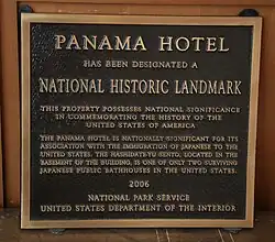 - ^ a b "Panama Hotel". National Historic Landmark summary listing. National Park Service. September 17, 2007. Archived from the original on January 30, 2008. Retrieved September 18, 2007.