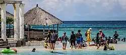 Pandanon is an island located in the Camotes Sea, in between the islands of Olango and Bohol, in the Visayas Region, Philippines. The island is locally administered by Barangay Pandanon, municipality of Getafe, Bohol. Pandanon is situated in the Danajon Bank, the only double barrier reef in the country and famous for its rich marine wildlife and diversity. It is 9 km (5.6 mi) northwest of the port of Getafe and 13 km (8.1 mi) southeast of Cordova, Cebu. While most of the residents in the island engage in fishing, some are employed in the tourism sector, working in the beach resorts of the island and provide island hopping tours for travelers. In the 2024 Census, the population of Pandanon is 2,306.[1] With a very small area of only 0.07 km2 (0.027 sq mi), the island is regarded as having a very high population density.