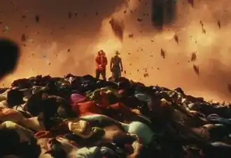 An accompanying music video was released on February 7, 2023. The visual was directed by Alejandro himself and Martin Seipel, who had also directed the video for Alejandro's previous single "Ron Cola". The video presents a forward-thinking, computerized visual experience, showcasing a setting that's reminiscent of the end of the world, populated by mechanical beings and costumes that seem extraterrestrial. In a particular scene, Alejandro is depicted as a half-human, half-robot entity. In a different scene, Daddy Yankee is seen performing his lyrics while motorcyclists zoom by in a seemingly abandoned locale. Midway through the video, Dominican singer Ángel Dior makes a brief appearance. Concluding the video, Daddy Yankee and Alejandro are seen standing atop a mountain as bras and panties fall from the sky like rain.[27][28]
