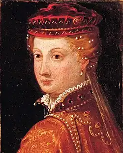 Paola Agnese Malatesta (1393 — 28 February 1449) also Paola of Mantua was an Italian noblewoman of the noble family House of Malatesta, rulers of Rimini and Pesaro.[1] She was born in Pesaro in 1393 to Malatesta IV Malatesta, lord of Pesaro and Fossombrone, and Elisabetta da Varano. On 22 August 1409 she married Gianfrancesco Gonzaga, leader of Mantua, in Pesaro. She was the first Marchesa of Mantua after her husband received the title.[2] Paola had six children. This union introduced the genetic disease of kyphosis to the Gonzaga family which showed in subsequent generations.[1][3]