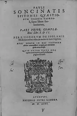 - ^ a b Efrem Jindráček (2022), "Soncino, Paolo Barbò", in Marco Sgarbi (ed.), Encyclopedia of Renaissance Philosophy (Springer).