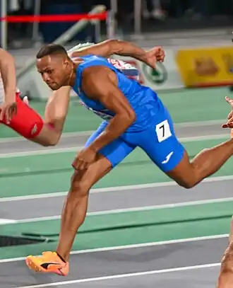 1. ^ He ran his PB 13.40, better crono of all athletes, in heats.