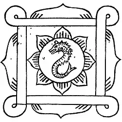 The typical Paphal shows a python biting its own tail, symbolizing the cyclical nature of life, the unity of creation and creator, and universal harmony. The intertwined body is interpreted as representing the union of male and female as sources of life.[2][6]