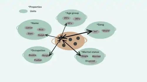 An example of the PDP model is illustrated in Rumelhart's book 'Parallel Distributed Processing' of individuals who live in the same neighborhood and are part of different gangs. Other information is also included, such as their names, age group, marital status, and occupations within their respective gangs. Rumelhart considered each category as a 'unit' and an individual has connections with each unit. For instance, if more information is sought on an individual named Ralph, that name unit is activated, revealing connections to the other properties of Ralph such as his marital status or age group.[8]