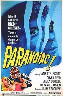 Paranoiac is a 1963 British psychological thriller film directed by Freddie Francis, and starring Janette Scott, Oliver Reed, Sheila Burrell, and Alexander Davion.[4] The screenplay, written by Jimmy Sangster, was based loosely on the 1949 crime novel Brat Farrar by Josephine Tey.