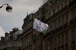 Paris 2024 Olympic bid flag flying in central Paris, June 17, 2017.