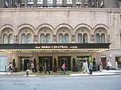 The hotel was built by Harry A. Lanzer and opened on June 12, 1927. Lanzer sold the hotel to Sheraton in 1948 and it became the Park-Sheraton Hotel.[4] Sheraton renamed it The New York Sheraton Hotel in 1972,[4] not to be confused with the later Sheraton New York Hotel. In 1983, Sheraton sold the hotel for $60 million[6] to V.M.S. Realty, which contracted with Dunfey Hotels to manage the hotel through their Omni Hotels division, and the hotel was renamed the Omni Park Central in January 1984.[7] The hotel was sold to developer Ian Bruce Eichner in 1995[4] and left the Omni chain, reverting to its original name, Park Central Hotel. Eichner converted half the hotel's 1,450 rooms into the Manhattan Club, a 266-unit, all-suite timeshare development located at the north side of the hotel at 200 West 56th Street.