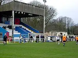 The Ground Up Solutions Stadium[2] (formerly Park Road Stadium) was constructed in the 1950s as the training ground for Manchester City.[1] The ground is owned by Stockport Metropolitan Borough Council.[3] During the 1966 FIFA World Cup, it was the training camp location for the Portugal national football team.[4][5] In 1982, Manchester City ceded the lease of Park Road to Grasmere Rovers (who would be renamed Cheadle Town a year later).[6] In 1993, it was used as the base for a football training school run by the Brazil national football team winger Jairzinho.[7] In 1995, floodlights were installed for the first time and this was commemorated with an opening match between Cheadle Town and Manchester United.[1]