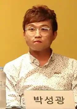 Park Sung-kwang (Korean: 박성광; born August 15, 1981) is a comedian, film director,[1][2] and rapper in the band Brave Guys.[3] He currently performs in KBS's Gag Concert, where he made his entertainment debut as a comedian in 2007.[4] He has owned a kimchi-business since 2011.[5] He was previously signed under SNS Entertainment.[6] He signed with SM C&C in 2018 and stayed with the agency until 2023.[4][7]