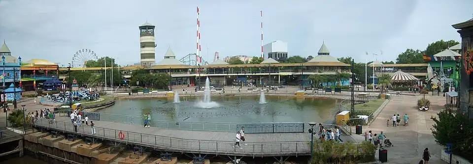 Following an investment of nearly US$400 million, the Parque de la Costa was inaugurated on April 10, 1997. The park, connected to the light rail line at the latter's Delta station, originally included Tronador (a Pinfari Zyklon Loop rollercoaster), El Dragón water coaster, the La Vuelta al Mundo ferris wheel, El Octógono stage, an amphitheatre, a musical fountain, and other attractions.[2] The park's projections of 3 million visitors a year failed to materialize, however (traffic was about half that amount).[3]
