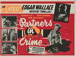 Partners in Crime is a 1961 British second feature ('B')[1] crime film directed by Peter Duffell and starring Bernard Lee, Moira Redmond and John Van Eyssen.[2] The screenplay was by Robert Banks Stewart, based on the 1918 Edgar Wallace novel The Man Who Knew.[3] It is part of the series of Edgar Wallace Mysteries films made at Merton Park Studios from 1960 to 1965.