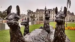 The promenade features a number of sculptures since the early 20th century. After the demolition of the restaurant of the now defunct Zoo at the Park of the Exhibition, the four animal statues located at its entrance, the work of Charles Valton, were moved to the park in 1945.[1]
