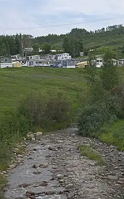 Highway 2 used to follow Pat's Creek into the Town of Peace River but had to be abandoned due to massive landslides on the section between Grouard Hill and Kauffman Hill. It is currently a 3 km (1.9 mi) wilderness interpretive trail above the creek.[2]