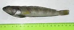 Patagonotothen ramsayi, the longtail southern cod, rock cod, marujo (in spanish) or Notothenia, is a benthopelagic species of marine ray-finned fish of the family Nototheniidae, the notothens or the cod icefishes, native to the Patagonian Shelf in the southwest Atlantic,[3] where it is the most abundant notothen species found, dominating among medium-sized demersal fishes in the area,[4] and is a commercially important species.[5]