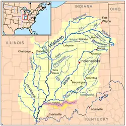 The Patoka River is a 167-mile-long (269 km)[1] tributary of the Wabash River in southwestern Indiana in the United States. It drains a largely rural area of forested bottomland and agricultural lands among the hills north of Evansville.