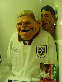 His tears in the national limelight made Gascoigne famous enough to be lampooned on Spitting Image. His puppet, which employed projectile tears, is now on display at the National Football Museum.[139]