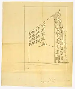 Rue Lhomond residence, perspective view of façade and gable wall, Archives nationales, 377 AP 236.