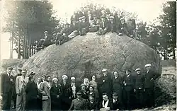 The organization was abolished after the Soviet occupation in June 1940. The Soviets persecuted the organization: its chairman Juozas Leimonas was arrested already in July 1940. Three members were killed in the Rainiai massacre and two in the Chervyen massacre.[9] Pavasarininkai also joined the anti-Soviet June Uprising.[10] As a result, many items related to Pavasarininkai were destroyed by the Soviet regime. For example, ten flags of local pavasarininkai groups at the Samogitian Museum "Alka" were slated for destruction, but were secretly preserved by museum employees.[11]