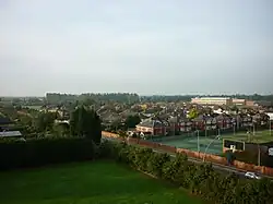 Residential terraced houses in Highfield and Peakesfield Avenues which are built parallel to the railway line, were formerly part of the Lord Heneage Estate. The 'freehold' of some houses had been bought by occupants but the land owner of the majority of property was the Heneage Estate and compensation under The Land Compensation Act was negotiated. Properties, or parts of properties, where predicted noise levels were to be 1 decibel or more above 68 decibels were eligible for compensation. The effects of road noise were mitigated by the installation of sound double glazing to properties and construction of a brick, noise attenuation wall 2 metres (6 ft 7 in) high. Several designs for the wall were considered but architects eventually decided upon a geometric pattern of bricks in two colours.